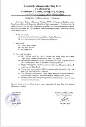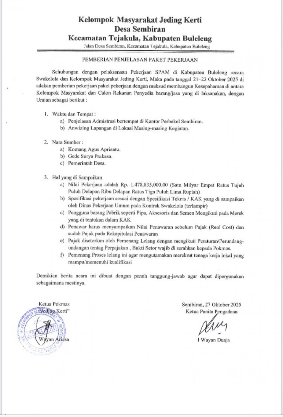 - Pemberian Penjelasan Paket Pekerjaan SPAM Pokmas Jeding Kerti, Bangun Kesepahaman Bersama
