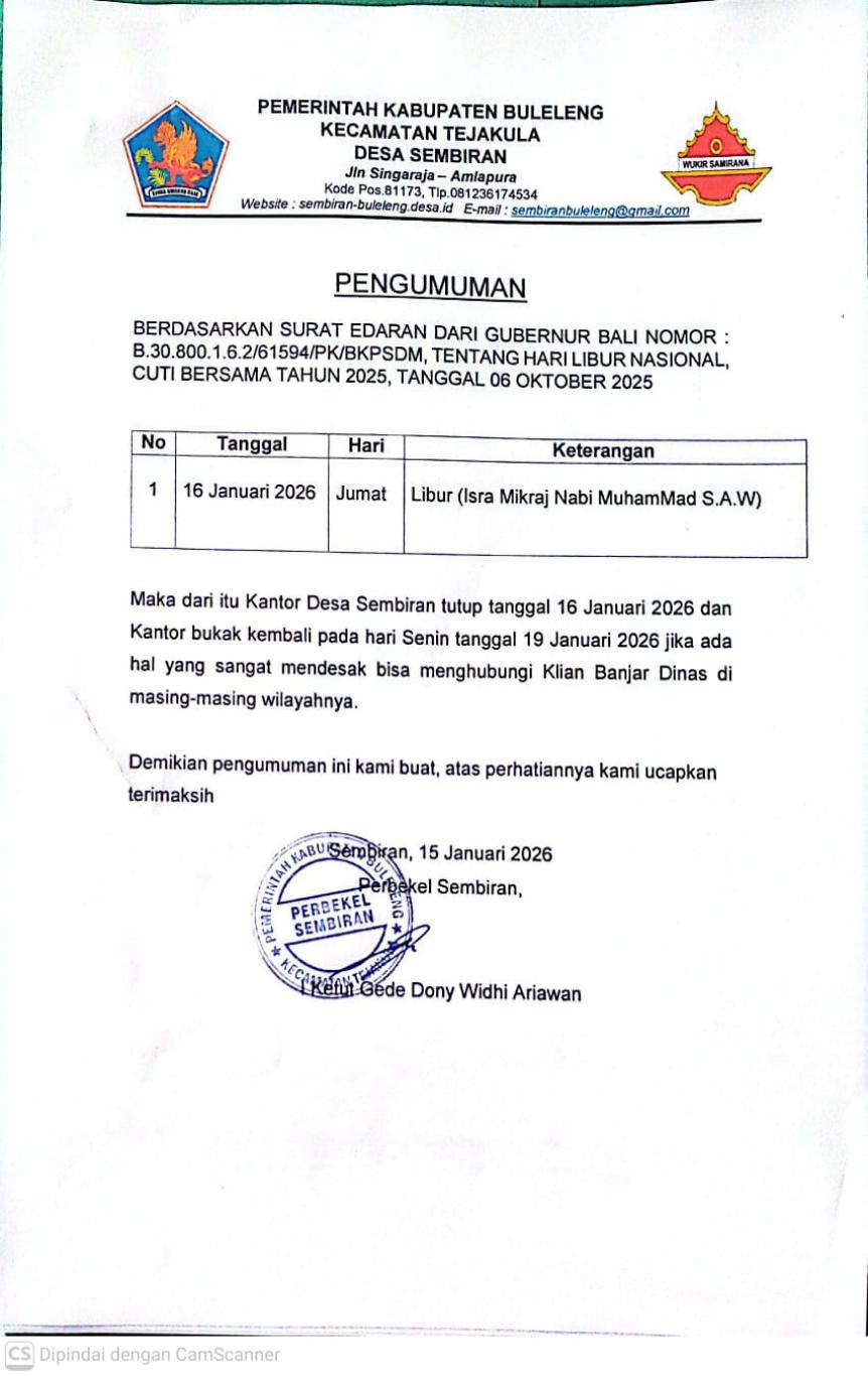 - PENGUMUMAN LIBUR NASIONAL 16 Januari 2026
