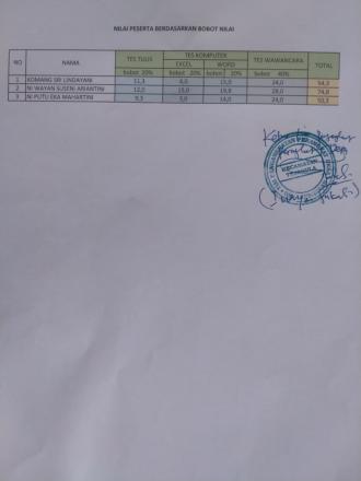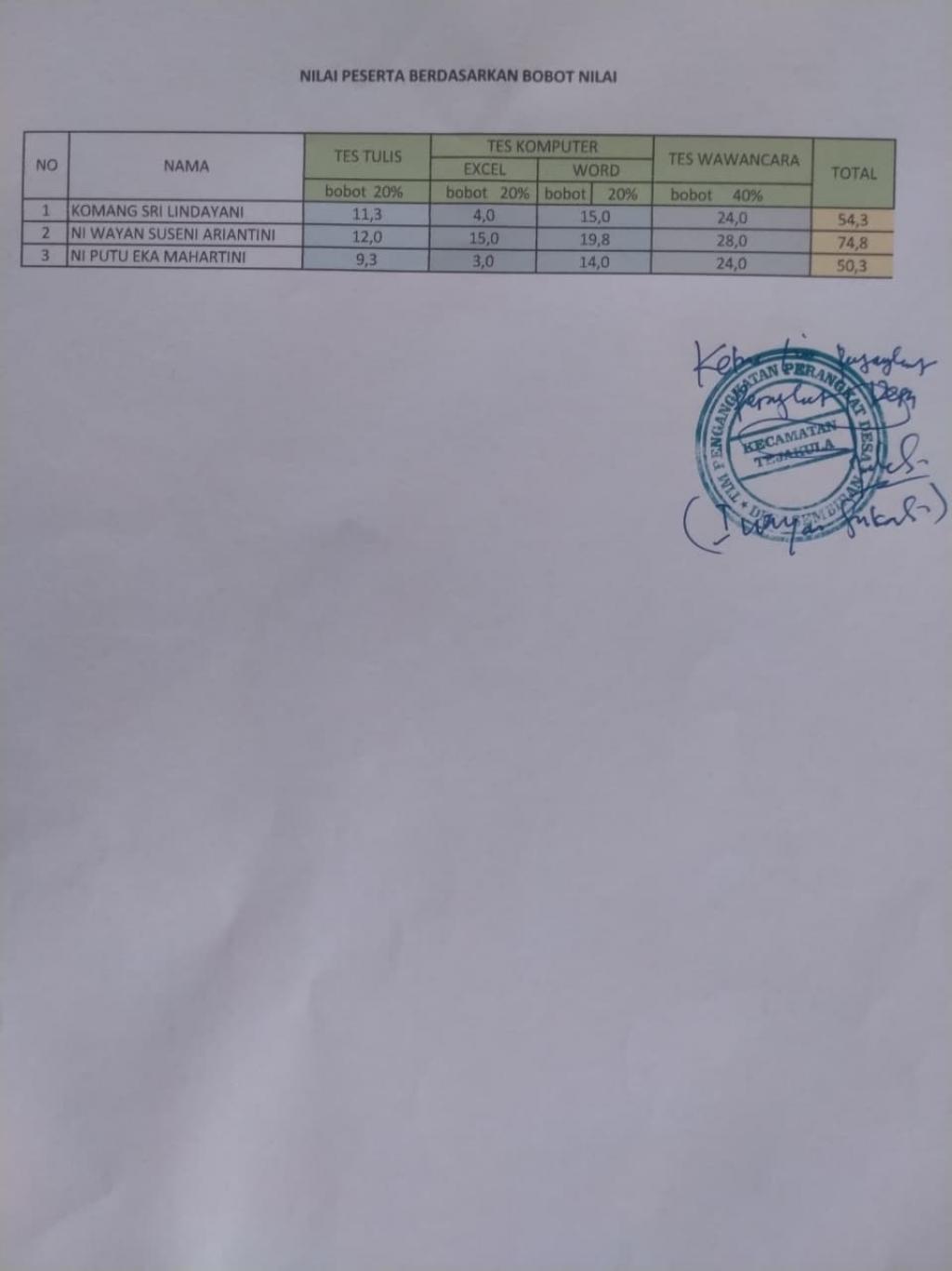 HASIL SELEKSI TES CALON PERANGKAT DESA