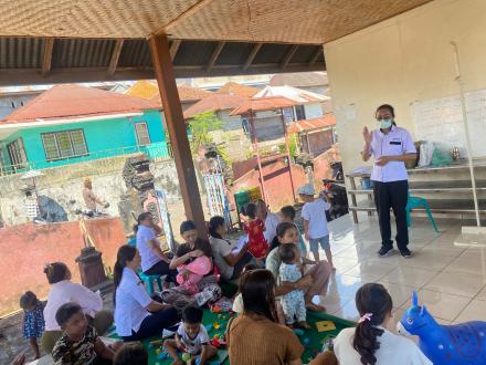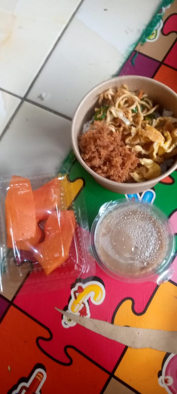 Pada kesempatan ini juga diberikan Pemberian Makanan Tambahan (PMT) bagi balita berupa nasi putih dengan lauk abon ayam, telur goreng, dan mie sayur, yang dilengkapi dengan puding serta buah pepaya sebagai tambahan asupan gizi untuk mendukung pertumbuhan anak.
